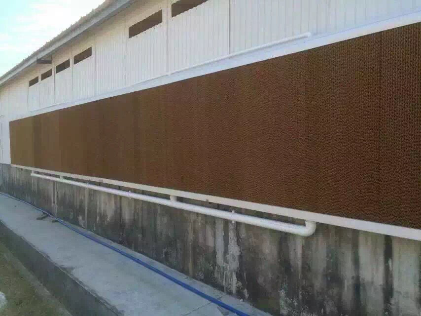在封閉的環(huán)境一端安裝風(fēng)機(jī),另一端安裝濕簾。風(fēng)機(jī)把畜牧場(chǎng)內(nèi)空氣抽走,使畜牧場(chǎng)內(nèi)形成負(fù)壓,氣壓差使外面的空氣通過(guò)濕簾降溫后進(jìn)入畜牧場(chǎng)內(nèi),并且空氣不斷的更新保持清新,從而營(yíng)造出適宜的畜牧環(huán)境,解決禽畜生長(zhǎng)緩慢、易患疾病、易傳染等問(wèn)題。